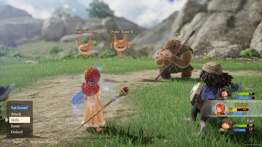 The combat itself is classic Dragon Quest. Battles are turn-based, and characters perform actions depending on the skills they learnt. It is such a traditional and simple system, but also incredibly polished. Roughly over a third of the way into the game, the vocation/job system unlocks, allowing you to change character classes and develop new abilities. This adds a layer of strategy as you experiment with different builds and combinations. It’s a simple yet effective system, even if the relatively low difficulty means you rarely need to push it to its limits.