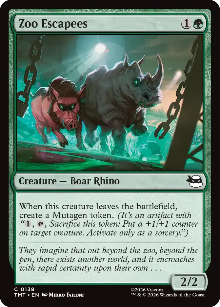 Mutagen is the star of the show as a means to buff creatures with 1/1 tokens. Players first earn a Mutagen artifact token that can then be sacrificed for counters.